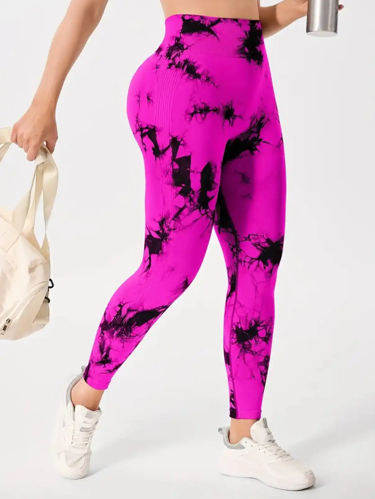 L’imprimé tie-dye noir et gris donne un look unique et dynamique, parfait pour la salle de sport ou les sorties décontractées